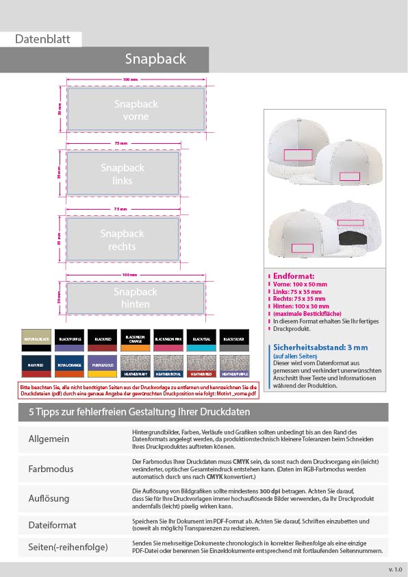 Snapback PREMIUM 2-Tone Cap, mit VIER Stickpositionen