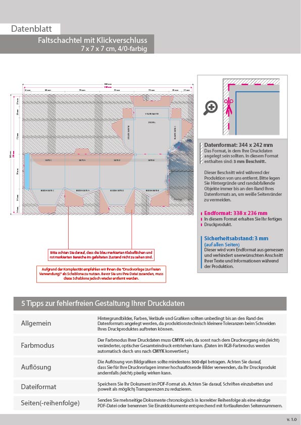 Faltschachtel mit Klickverschluss (7 x 7 x 7 cm) einseitig bedruckt 4/0-farbig