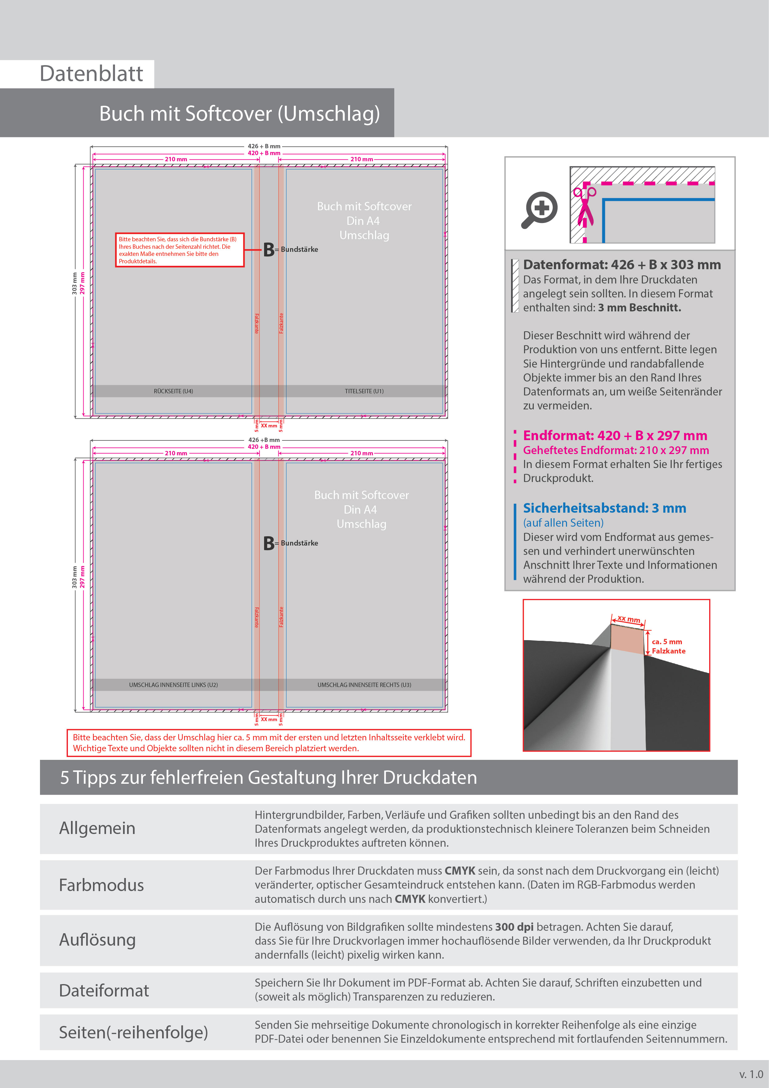 Buch DIN A4 hoch, Umschlag: Softcover 4/4-farbig